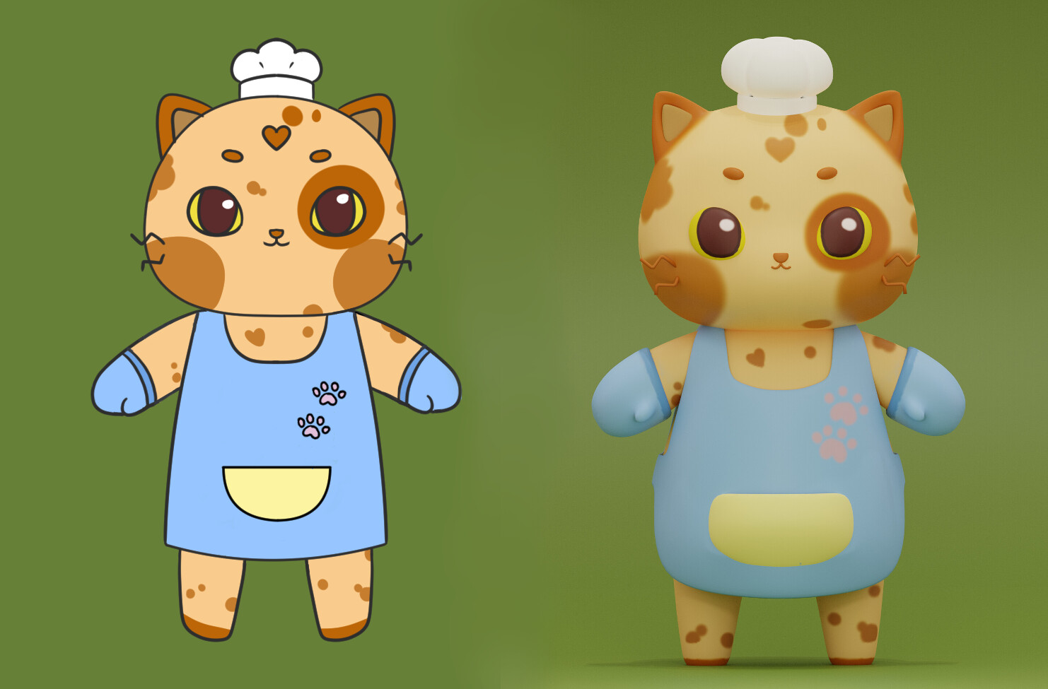 Chef Meow is a character I designed to be used in my personal game project. I tried to translate the character's cuteness from 2D to 3D and I think I've succeeded ・ᴗ・ My biggest difficulty was modelling a chef hat as I had never modeled something that required high detail and symmetry while maintaining a clean topology before. I enjoyed the process of texturing Chef Meow, as he was quite a simple model, so I could play around with adding the details in his fur. This was also a fun way for me to get more practice into my understanding of Colour Theory and how to apply it. Next time, I will pay more attention and focus on improving the UVs as there were some difficulties while texturing the model.
