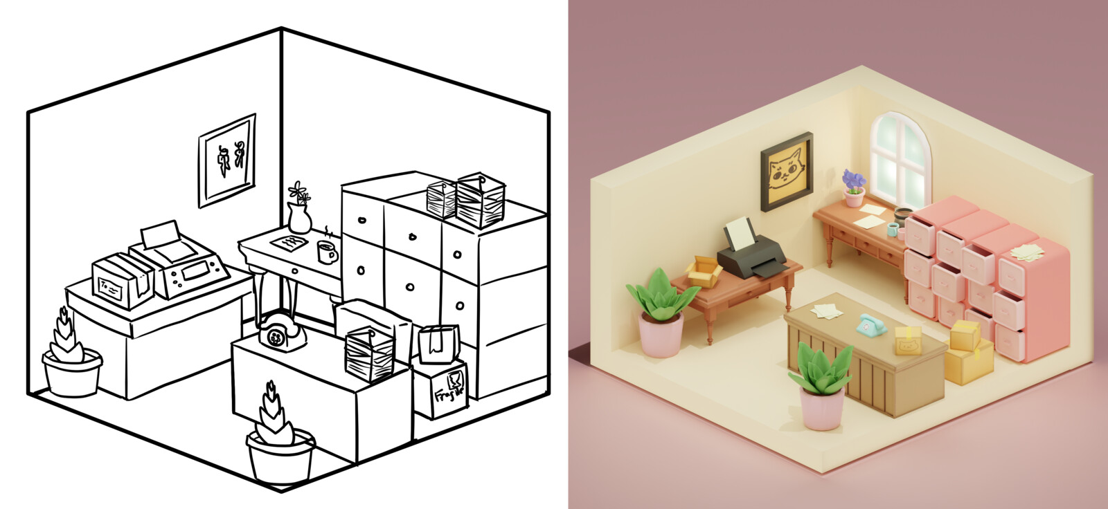 The post office is one of the main locations in our game “Catto’s Post Office”, where postman Catto will be collecting and delivering the mails from. It is a simple and cozy environment, perfect for a kitty to rest and work from. The assets have been optimized for in-game use with a low poly count while maintaining the visuals that match the game's aesthetics. From a concept sketch to a 3D render, I enjoyed the process of bringing the sketch to life and seeing how different things can be on paper and in game. I've learned to use objects to create space or fill in space where needed, as well as using textures for a more stylized look overall.