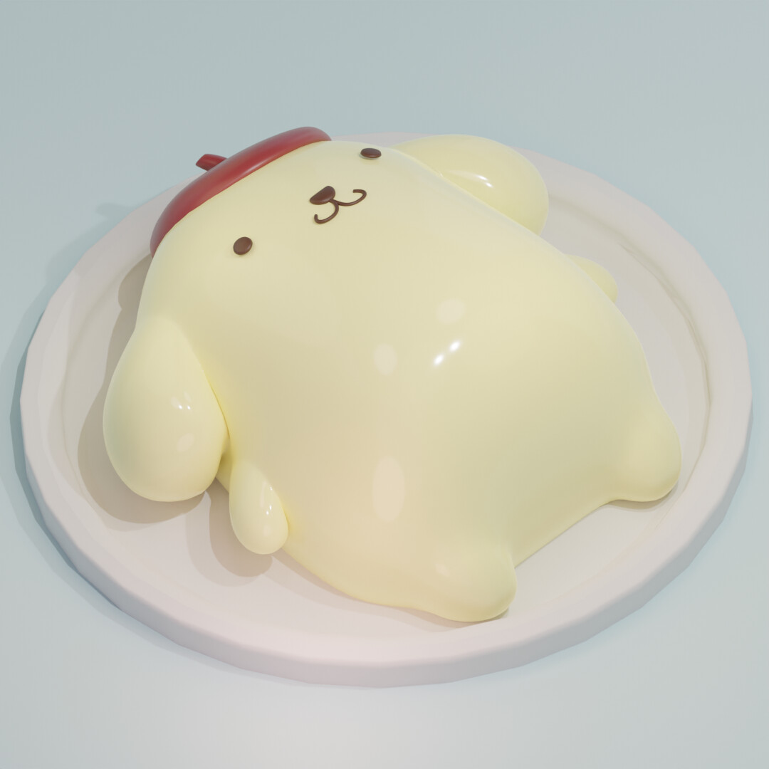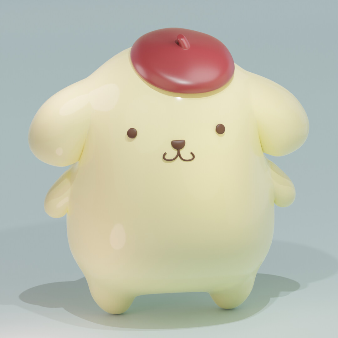I decided to model Pompompurin as part of my character modeling practice. I love Japanese puddings (or "purin") and wanted to recreate the shiny and glossy feel of the dessert. I added a blue background to highlight the character, as blue and yellow are complimentary colors. I am excited to create more characters and improve my modeling skills.
